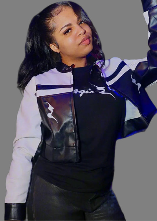 Black & White Crop Motorcycle Jacket