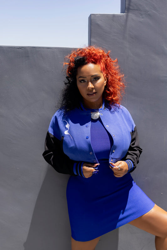 Blue & Black Magic City Crop Varsity Jacket